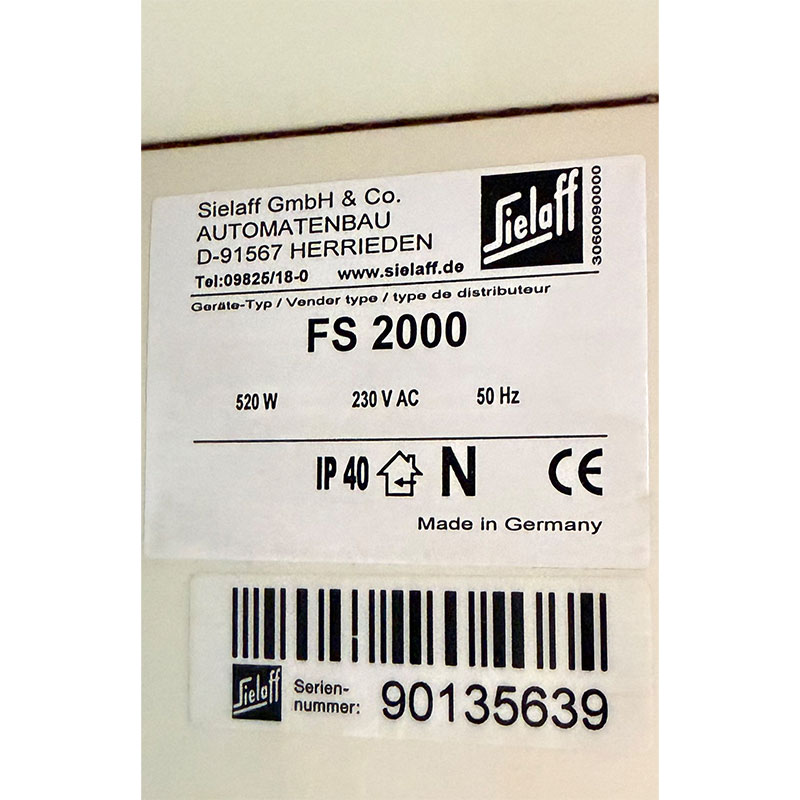 Der Sielaff FS 2000 bietet ein optimales Angebot für die Verpflegung zwischendurch. Mit diesem Kombiautomat ist ein ideales Gerät für Aufstellplätze gelungen, an denen mit nur einem Gerät möglichst viele Verpflegungswünsche abgedeckt werden sollen. Vom Snack bis zum kalten Getränk, er hat alles im Sortiment, kurzum: die marktgerechte Lösung für Ihren Aufstellplatz.