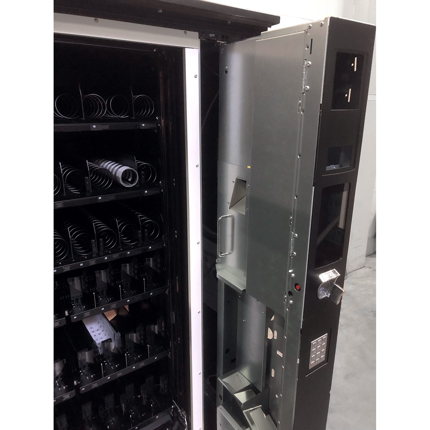 Münzschaltgerät (MDB-Schnittstelle) und Geldscheinleser, falls benötigt, bitte extra dazu bestellen.